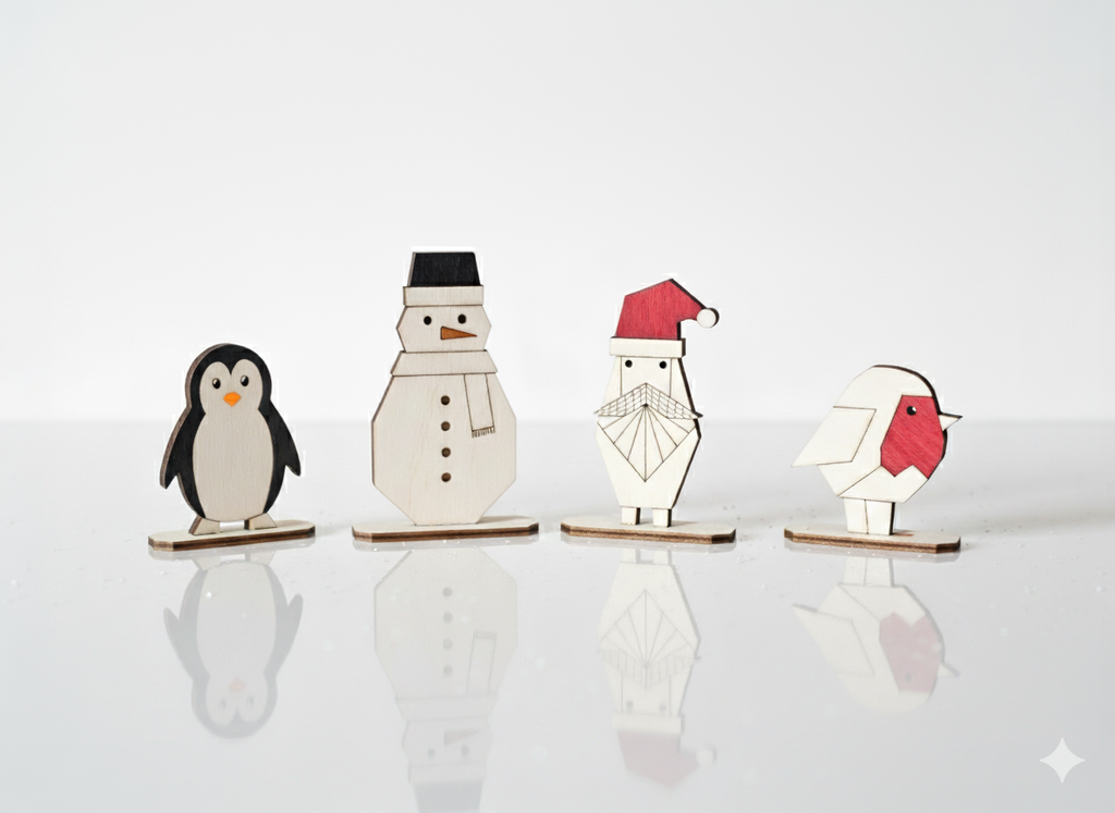 - Festive Friends: Charming wooden characters, including the Penguin, Snowman, Santa, and Robin.